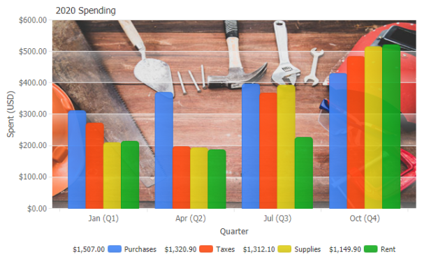 Query a MySQL Database using PHP to get multiple shaded bar series on a chart with a background image.